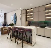 Residences range in size from 440 sq. ft. to 4,140 sq. ft. and are thoughtfully designed with features such as balconies, laundry rooms, and powder rooms. The duplexes are enhanced with maid’s rooms and private terraces, while the apartments boast stylish kitchens equipped with premium appliances, porcelain backsplashes, and stainless-steel sinks. Bedrooms are fitted with built-in wardrobes for added convenience.