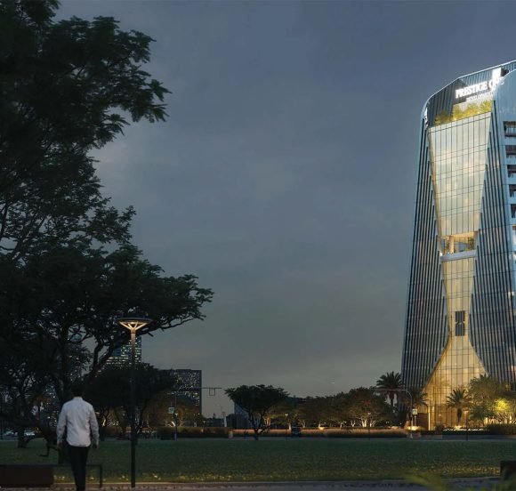 This 14-floor commercial complex features offices tailored for businesses of all sizes. Two floors are dedicated to large companies, and one floor will house Prestige One Developments’ headquarters. Office spaces range from 1,874 sq. ft. to 2,484 sq. ft., with floor areas reaching up to 6,800 sq. ft.