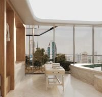 The One combines productivity with comfort, offering facilities such as a virtual golf simulator, spa pool, sauna, library, cafe, and gym. These amenities are designed to create an inspiring work environment for tenants and their clients.