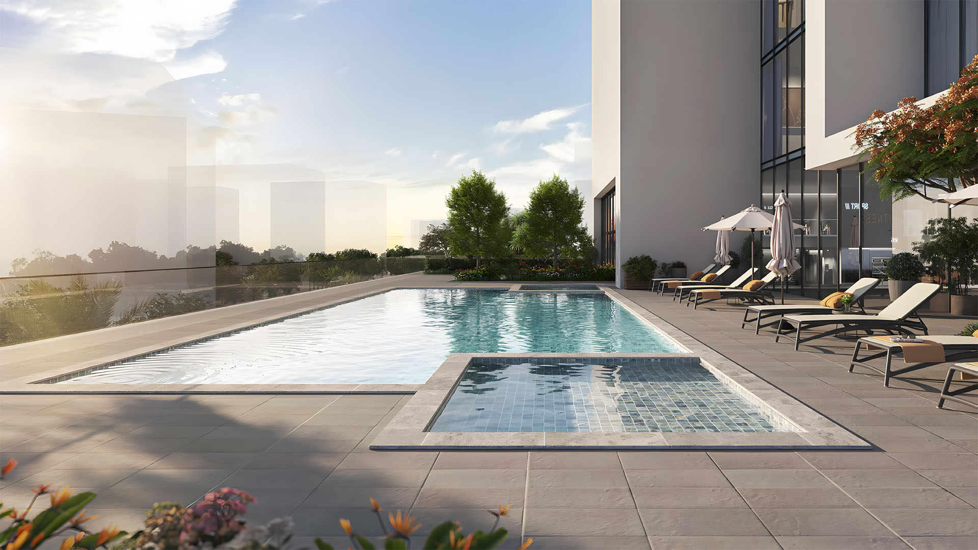 The complex offers a selection of modern residences, including studios and 1 to 3-bedroom apartments. Prices for a 1-bedroom unit start at AED 1.26M (USD 343K), making it an appealing choice for both investors and homebuyers.