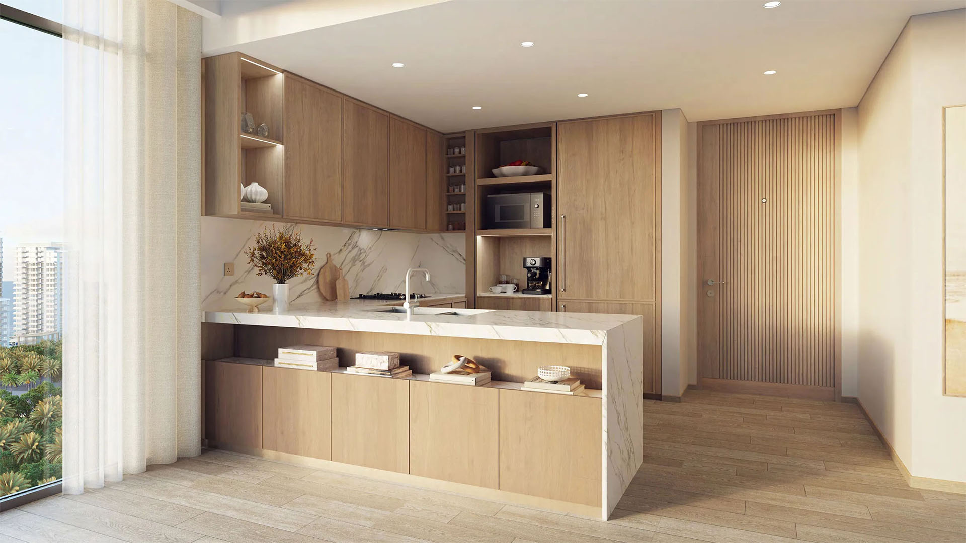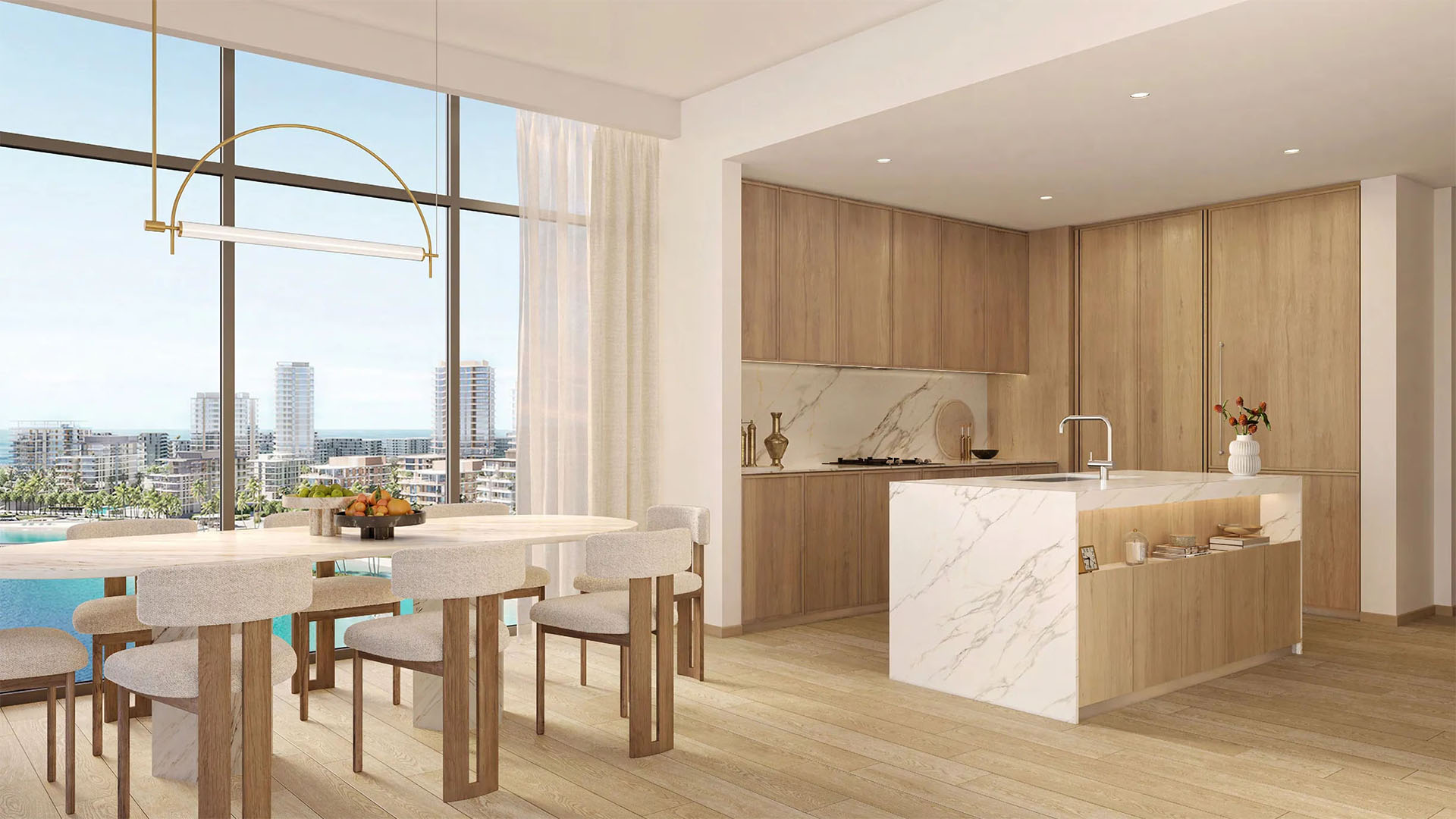 Bay Grove Residences, Nakheel Properties’ latest masterpiece on Dubai Islands, will offer 296 luxury residences ranging from 1–3 bedroom apartments, penthouses, and four-bedroom duplexes with breathtaking sea views. This high-end complex will feature 4 interconnected buildings, an infinity pool, and direct beach access