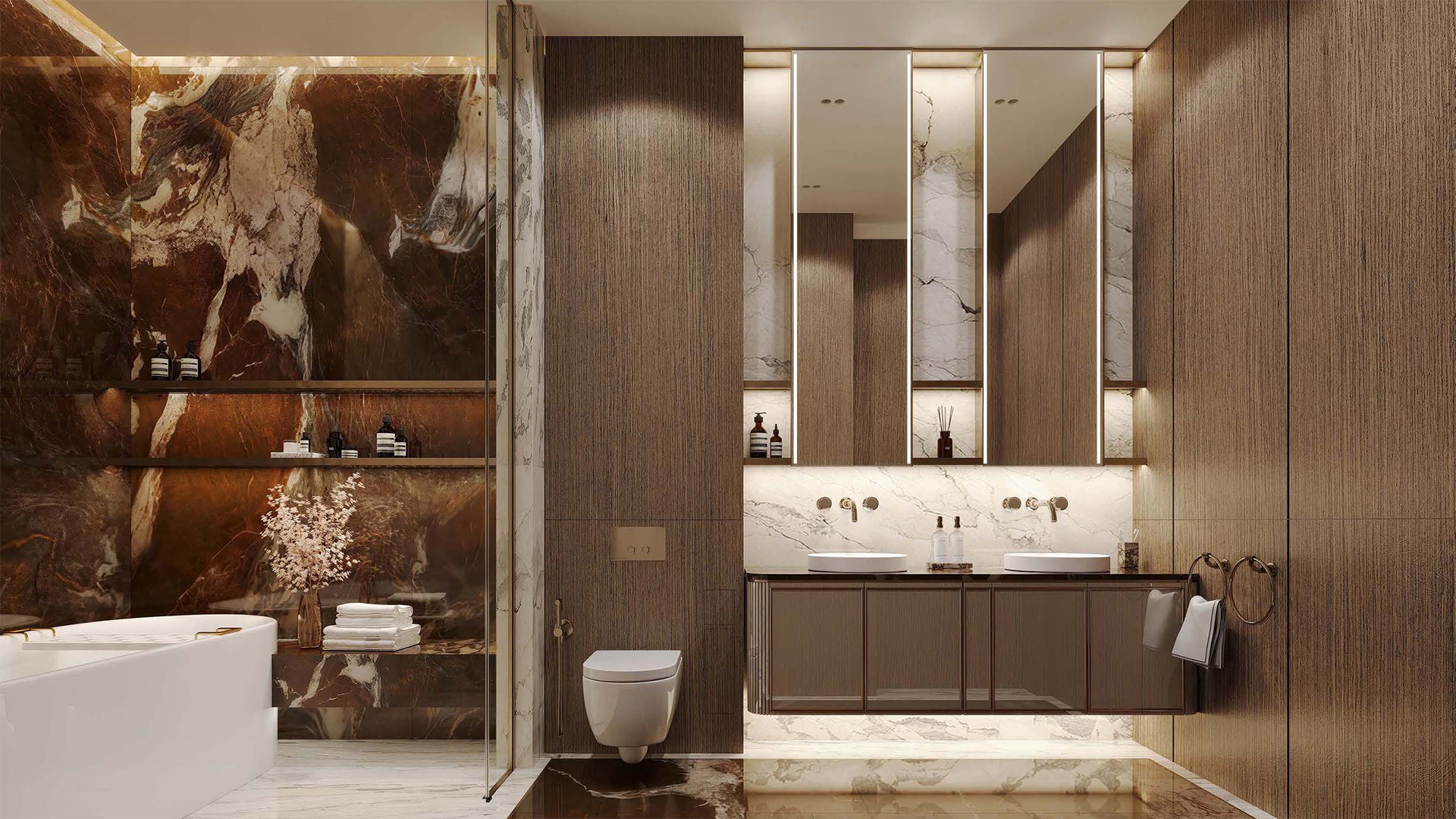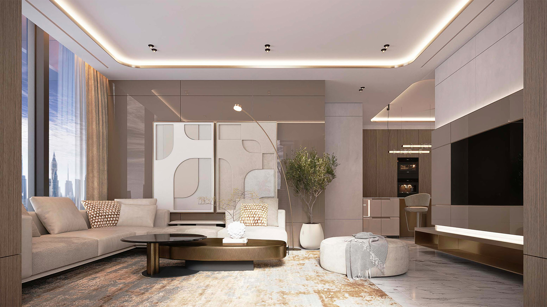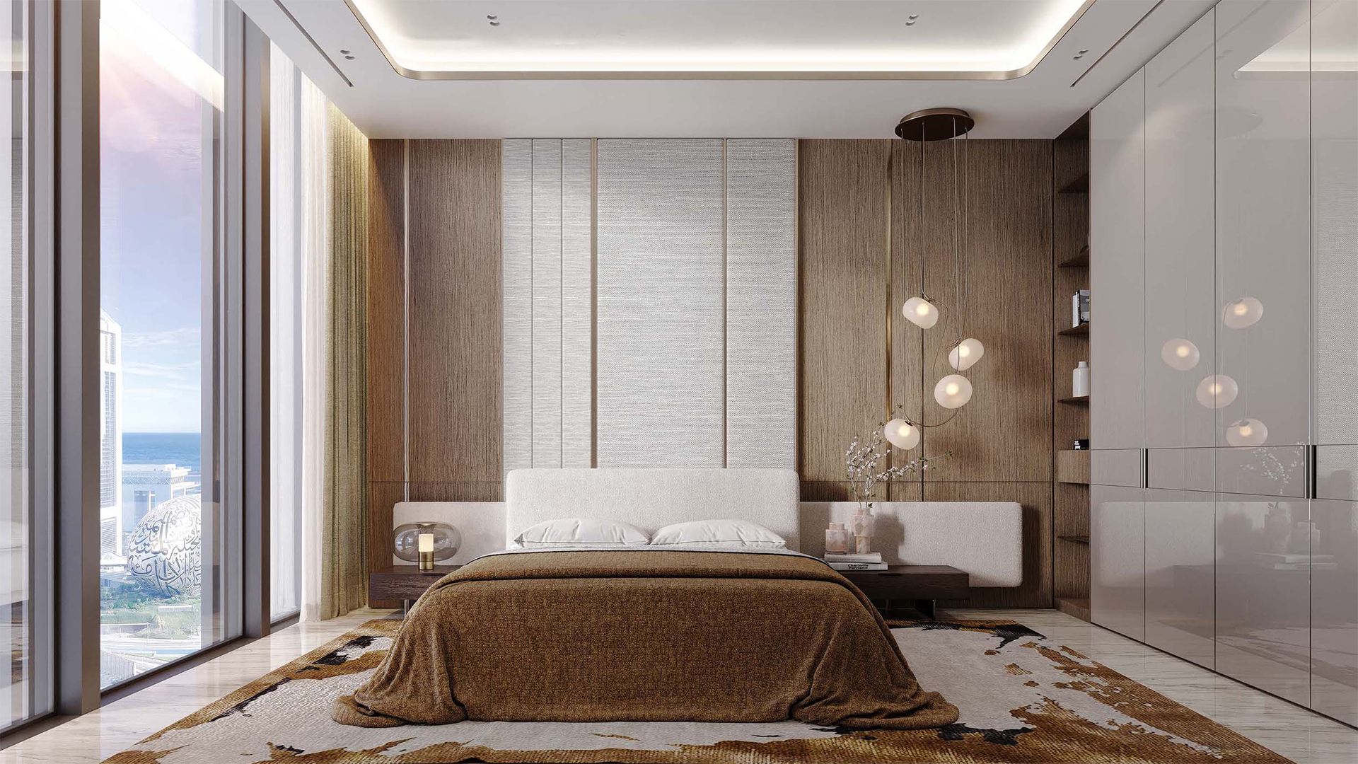 The property features an exclusive collection of luxury residences, including 1–3 bedroom apartments and opulent penthouses. Prices for a 1-bedroom apartment start at AED 8M (USD 2M), with a flexible 50/50 payment plan available for buyers.