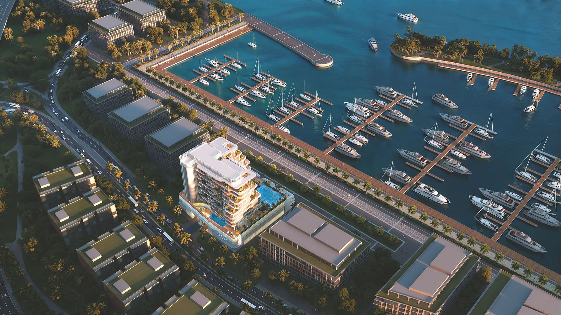 Residents will benefit from direct access to the marina and promenade. Amenities include a luxury lobby, swimming pools, and leisure areas designed to complement the upscale living experience.