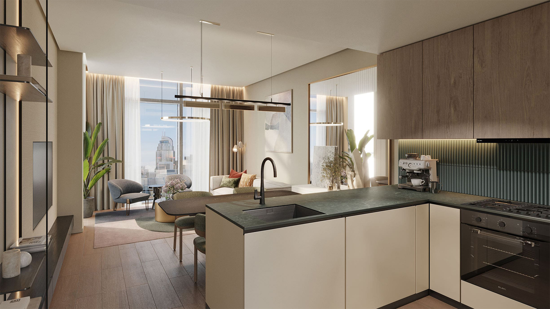Strategically nestled between Al Satwa and Sheikh Zayed Road, residents enjoy excellent connectivity to major city hubs. Dubai International Airport is only 14 minutes away, while Dubai’s pristine beaches can be reached in just 10–15 minutes.