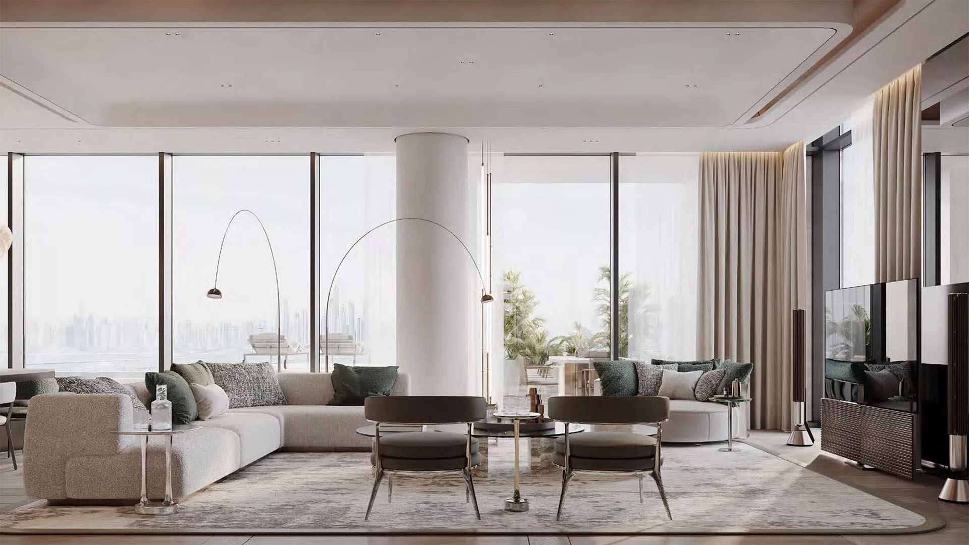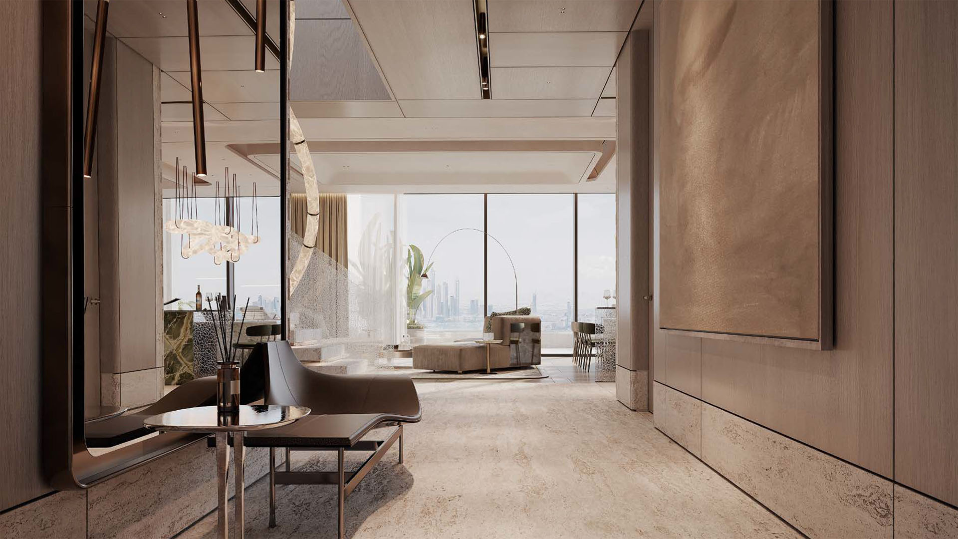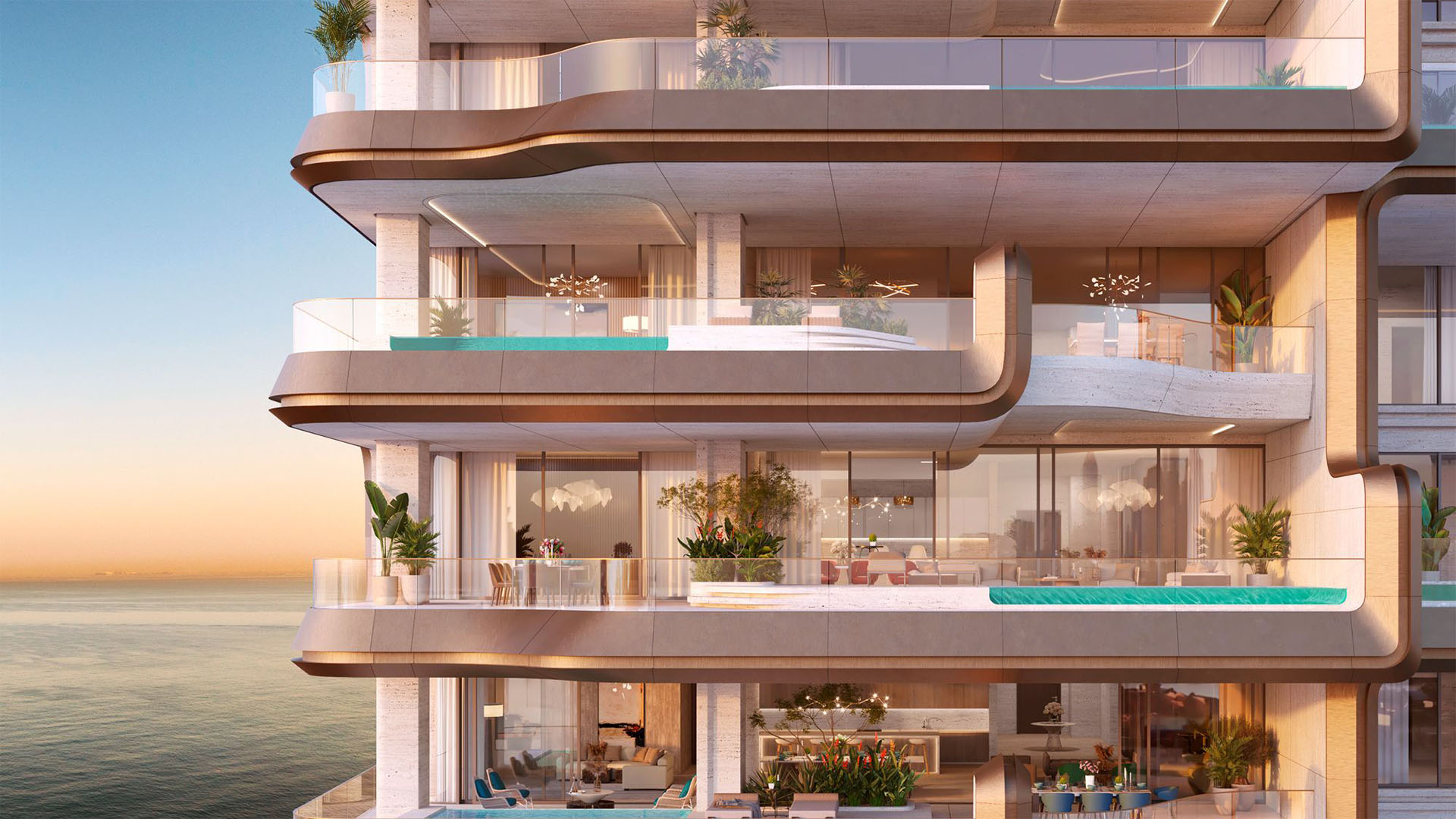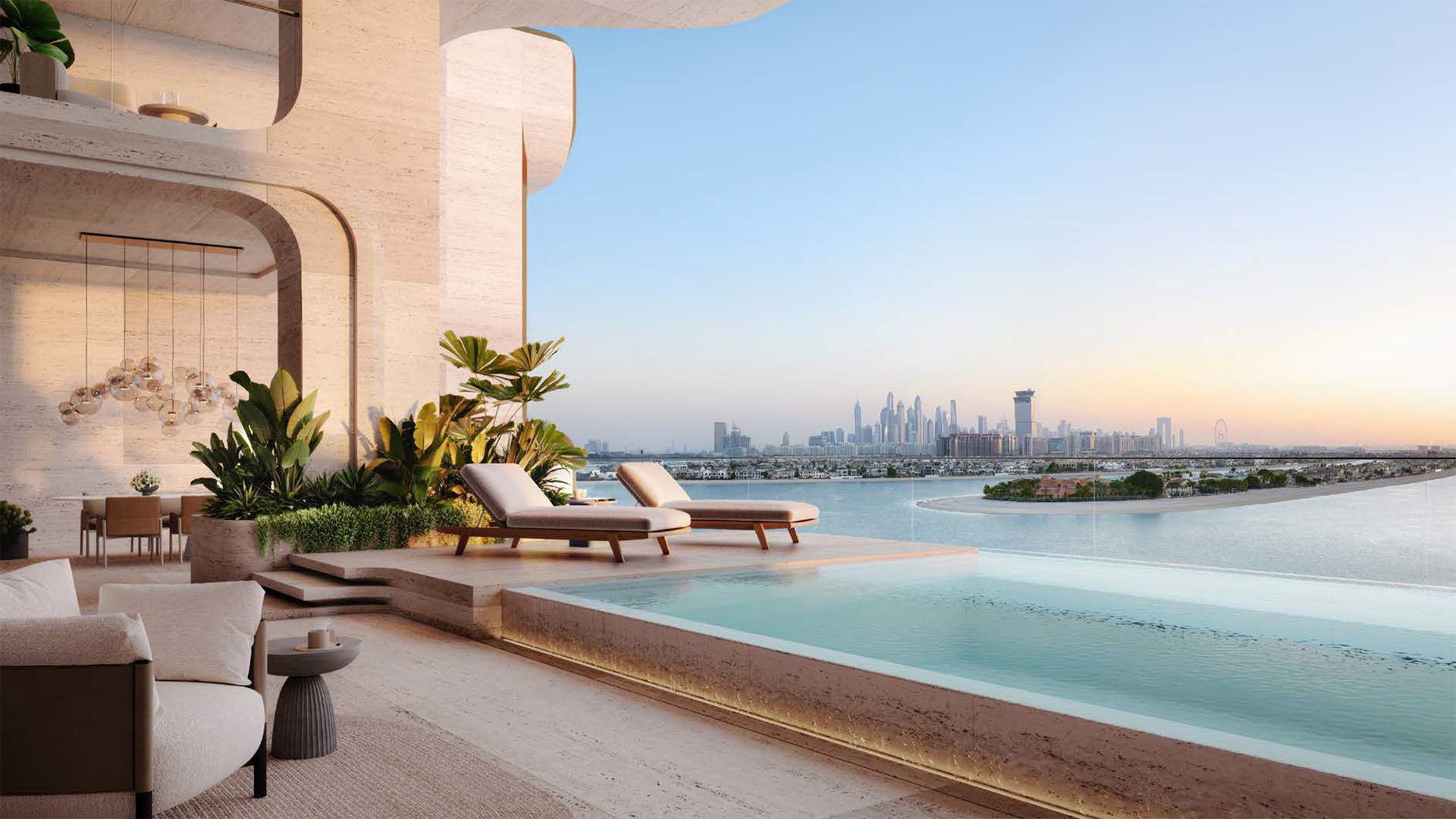 ELA Residences redefines luxury living on Palm Jumeirah. This boutique complex features just 63 exclusive residences and a high-end beach resort, offering stunning views of the sea, Burj Al Arab, and Burj Khalifa.