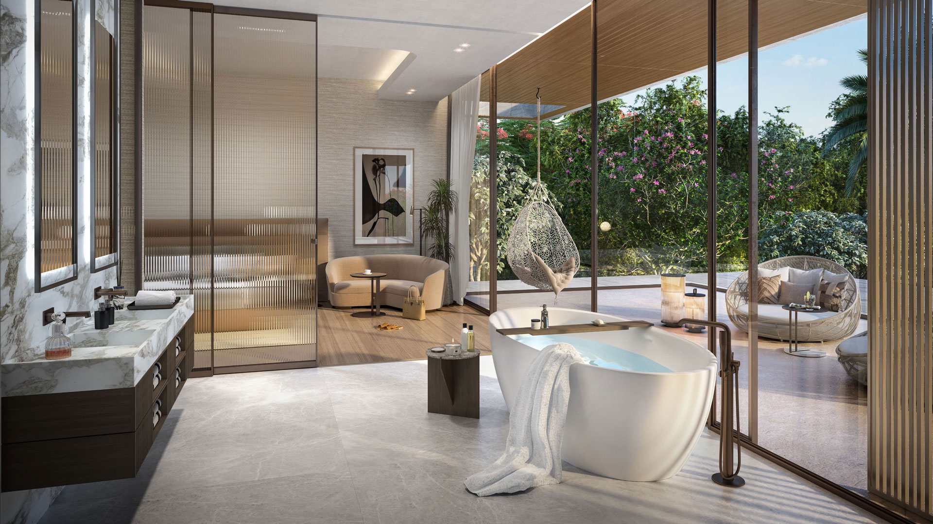 Designed for discerning homeowners, Elysian Mansions harmonizes smart technology with timeless architecture. Think marble floors, stone-clad facades, and bespoke walk-in closets. Buyers can personalize their exteriors with a selection of sophisticated finishes—from rich, earthy stones to warm neutrals. Inside, interiors showcase veined marble, handcrafted timber, and refined metal accents for an unmistakably elite aesthetic.