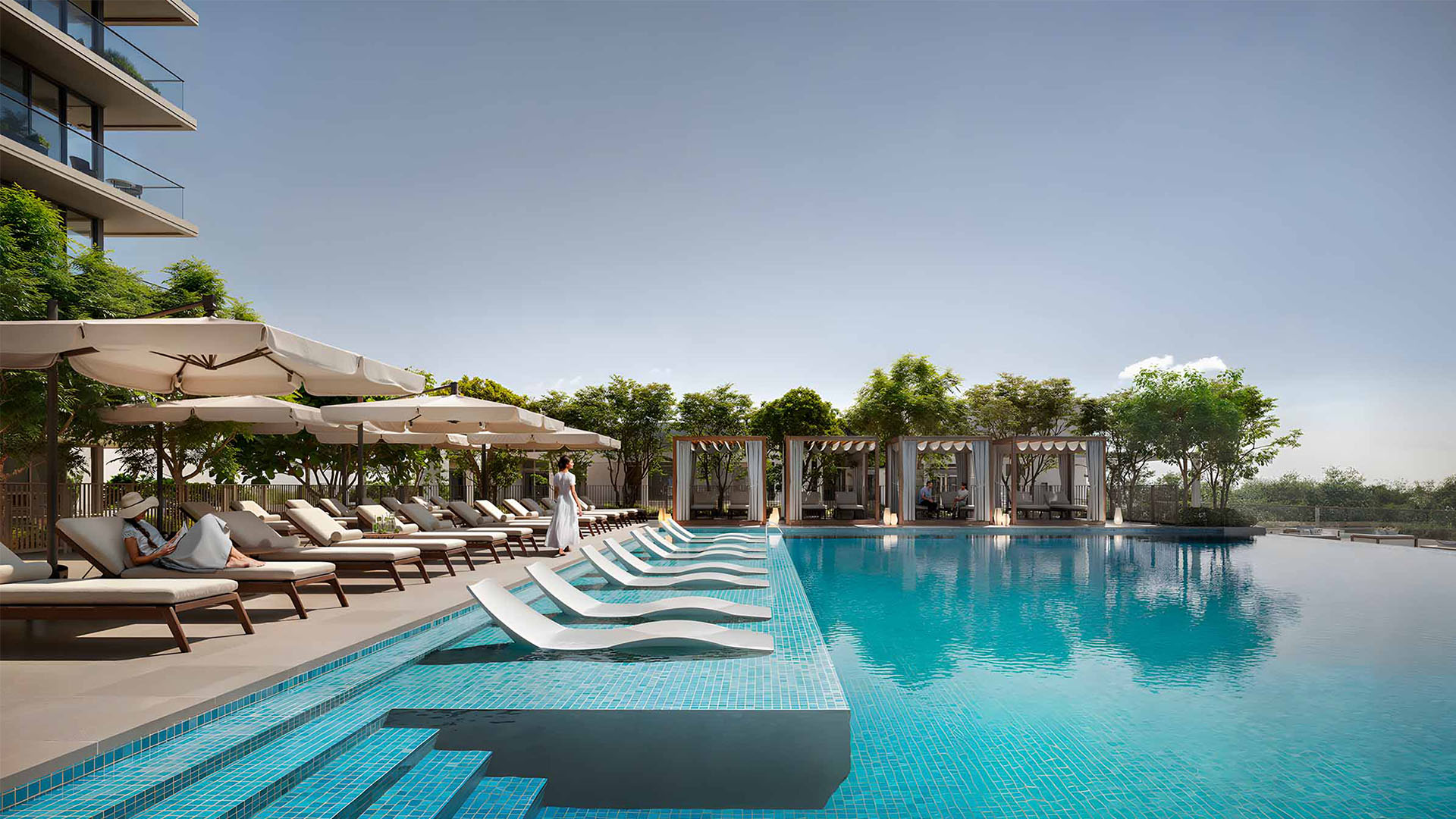 Designed for a golf-inspired lifestyle, Golf Acres includes a top-tier clubhouse, fine dining options, jogging tracks, yoga decks, an outdoor gym, and BBQ areas.