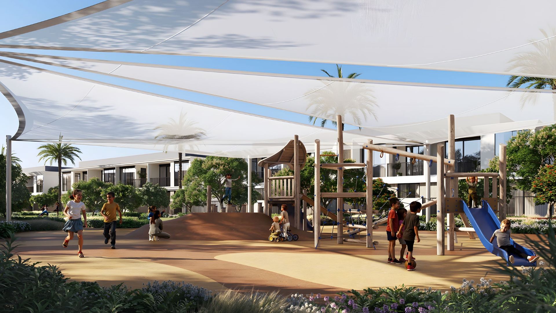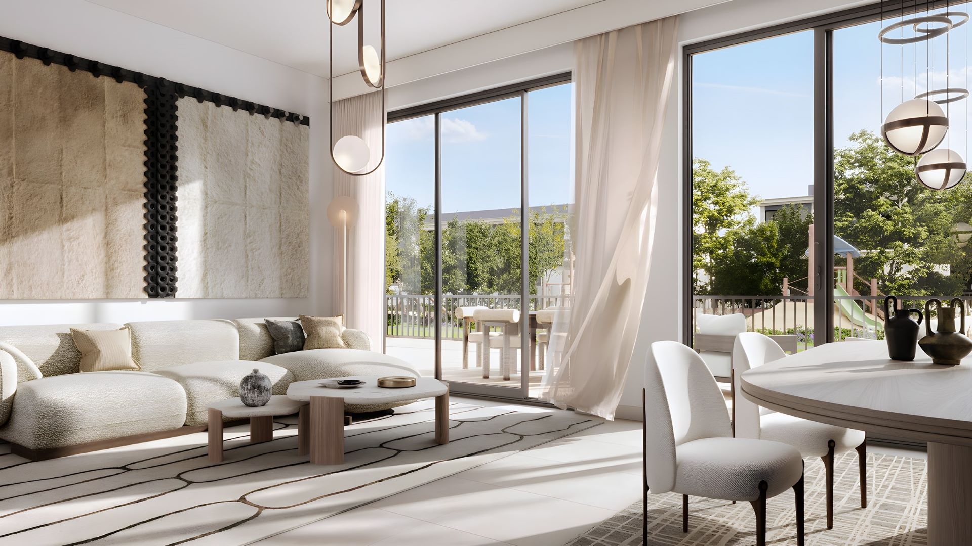 This exclusive neighborhood boasts a limited collection of upscale 3-4 bedroom townhouses and spacious land plots. Residences range in size from 2,450 sq. ft to 2,750 sq. ft., with prices starting at AED 3.36 million (USD 915K) for a 3-bedroom home.