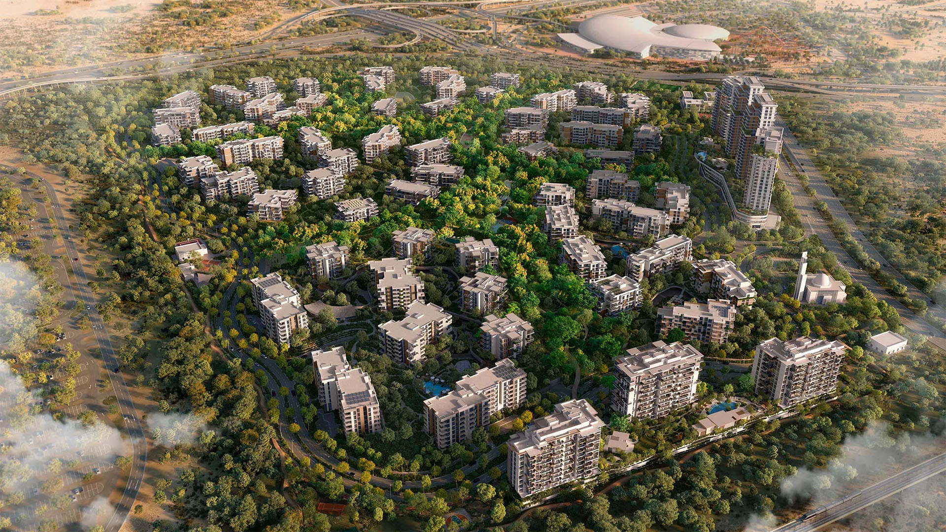 Dubailand, one of Dubai’s largest districts, was originally envisioned as a premier entertainment hub, blending recreational attractions with expansive residential areas. The district features 25 independent entertainment projects, including parks, indoor and outdoor sports areas, and scenic walking paths, creating a vibrant community atmosphere.
