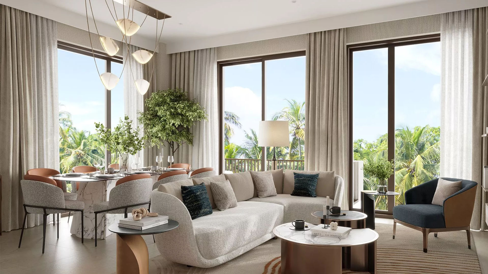 The development consists of two elegant skyscrapers housing 135 meticulously designed apartments. Residents can choose from a selection of 1-3 bedroom apartments, with sizes ranging from 615 sq. ft. to 1,701 sq. ft. The spacious three-bedroom units also feature a dedicated maid’s bedroom. Emphasizing a minimalist aesthetic, the interiors incorporate earthy tones of grey and brown, creating a calm and inviting ambiance. Each residence boasts thoughtfully planned layouts that include balconies, laundry rooms, and dressing areas, ensuring both comfort and functionality. Mangrove offers an exclusive opportunity to live in a peaceful, green environment while enjoying the vibrant energy of Dubai Creek Harbour.