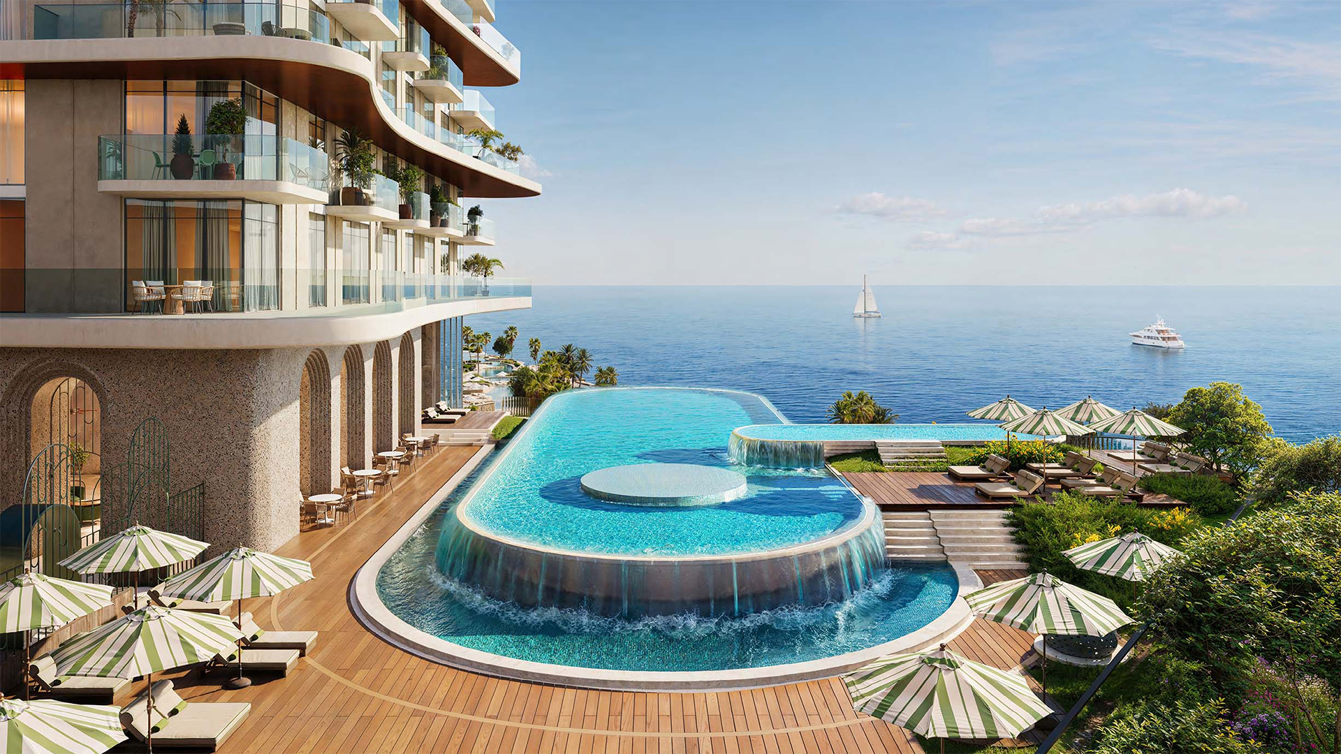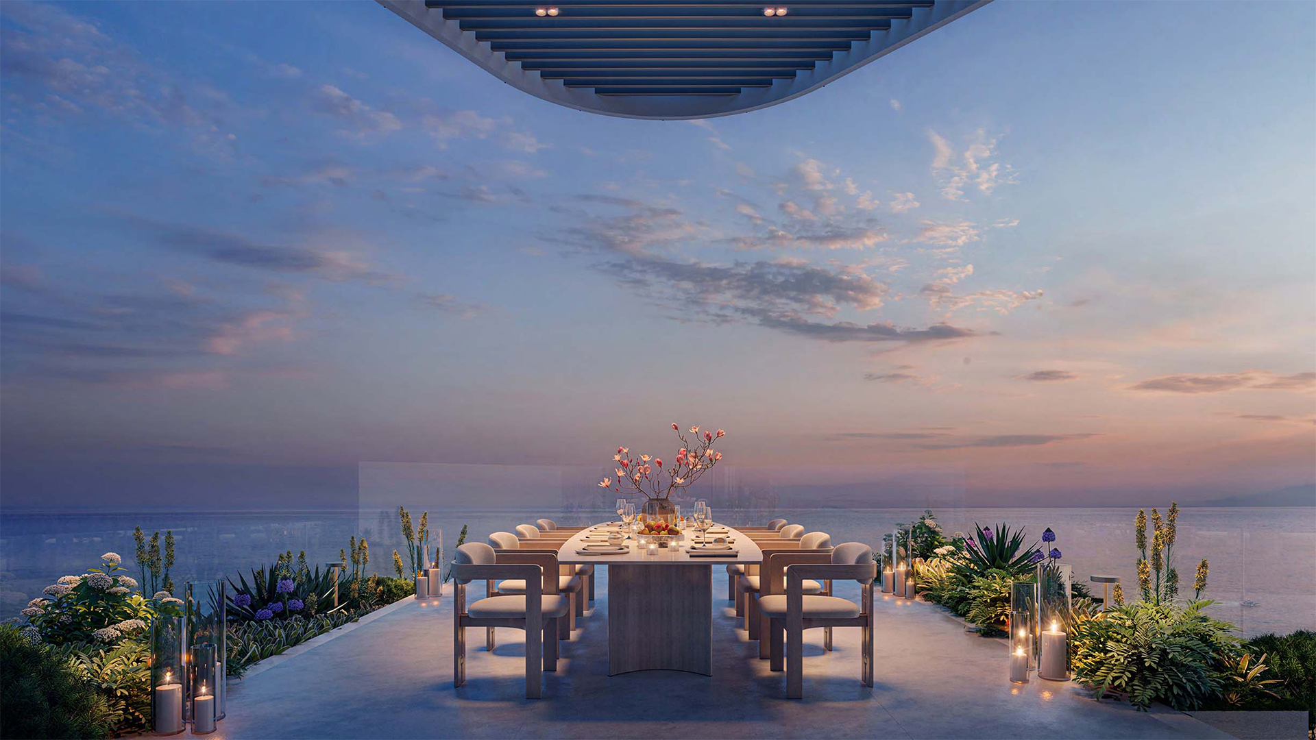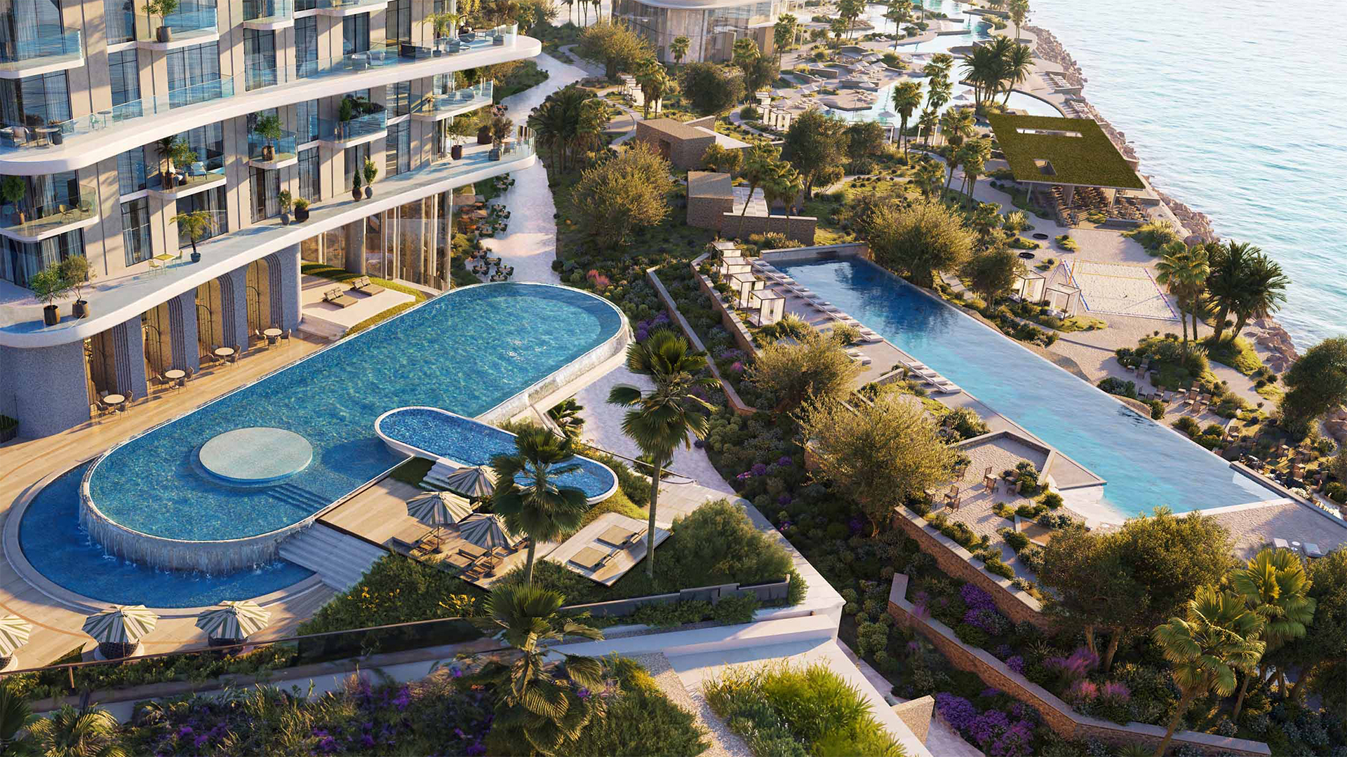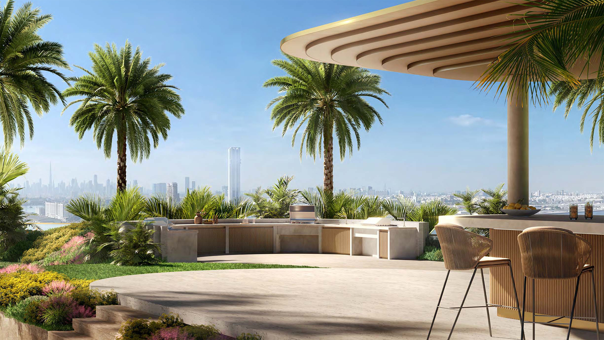 Residents will have access to an impressive selection of world-class facilities, such as a serene palm grove, indoor and outdoor lounge areas, swimming pools, a BBQ zone, and an open bar area.
