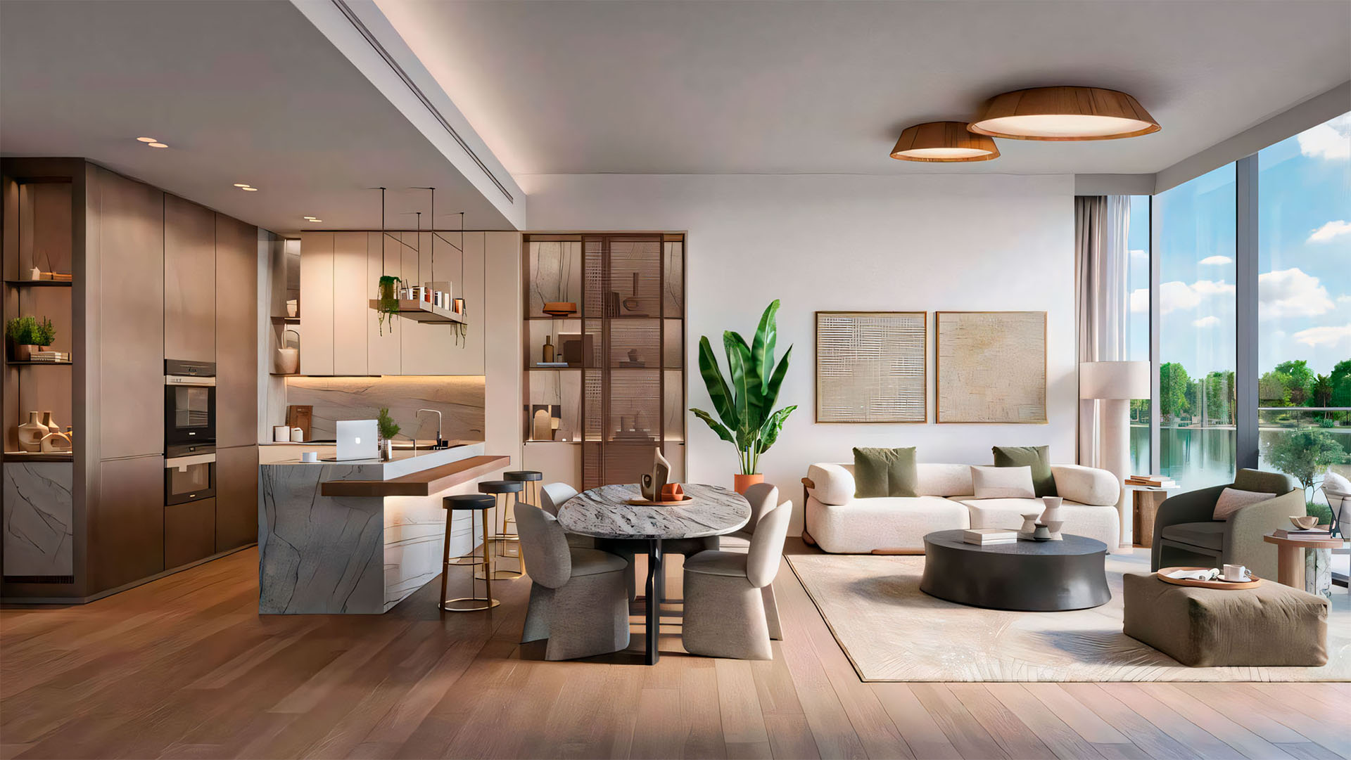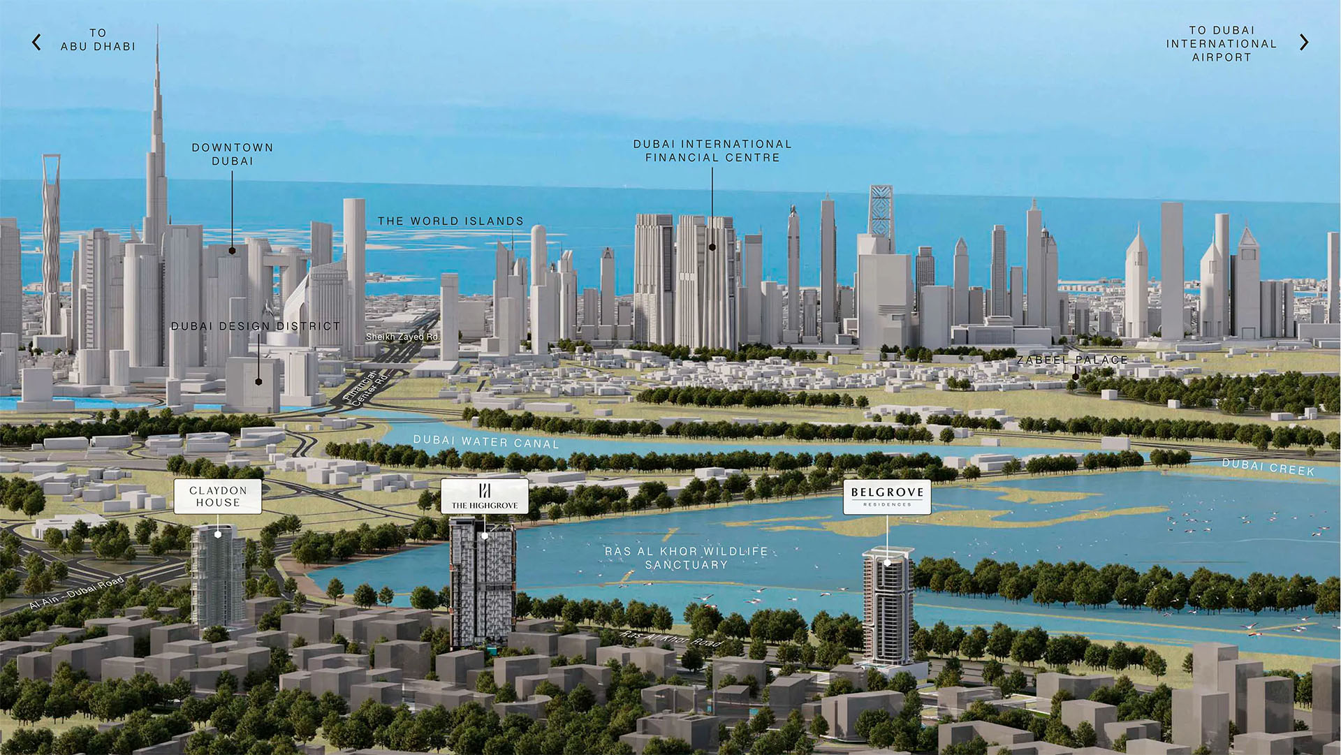 Located in MBR City, one of Dubai’s largest mixed-use neighborhoods, The Highgrove offers a harmonious blend of tranquil waterside living and urban convenience. The area features a 7-kilometer artificial lagoon, a 14-kilometer waterfront, and 8.4 kilometers of cycling and jogging paths, alongside parks, supermarkets, and top-tier schools like Hartland International School Dubai and North London Collegiate School.